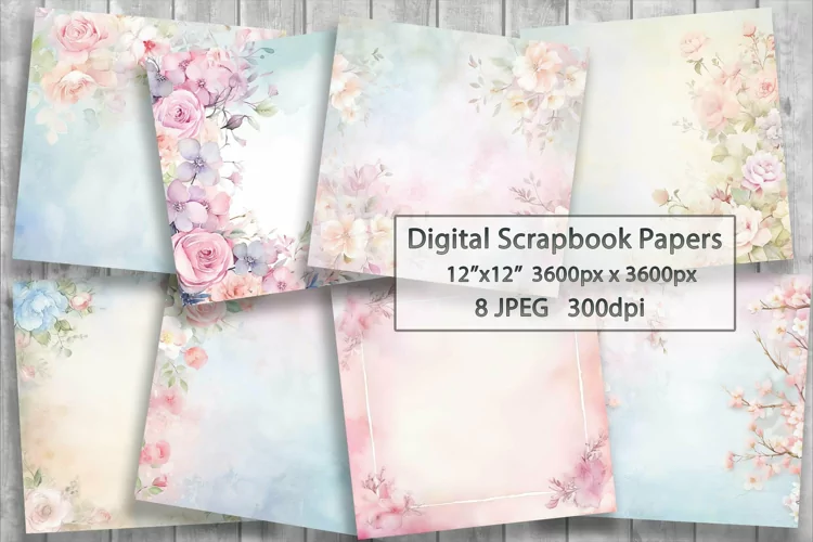 Similar Design Products to Floral Backgrounds. Watercolor Digital Scrapbooking Papers