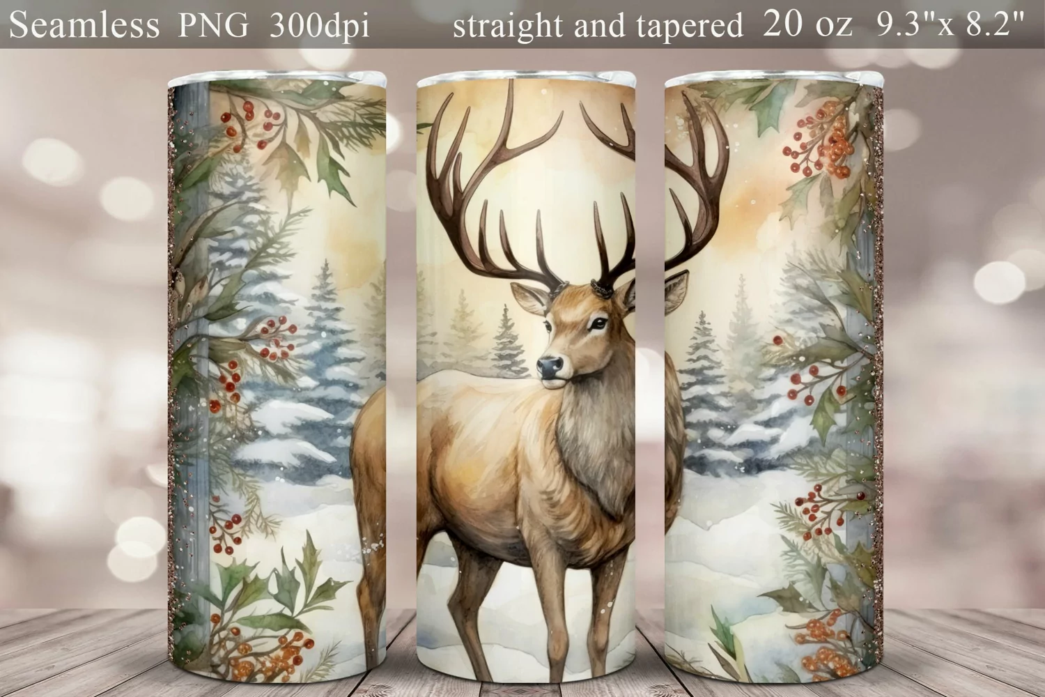 Christmas Deer Tumbler Sublimation | Winter Tumbler Wrap example image 1