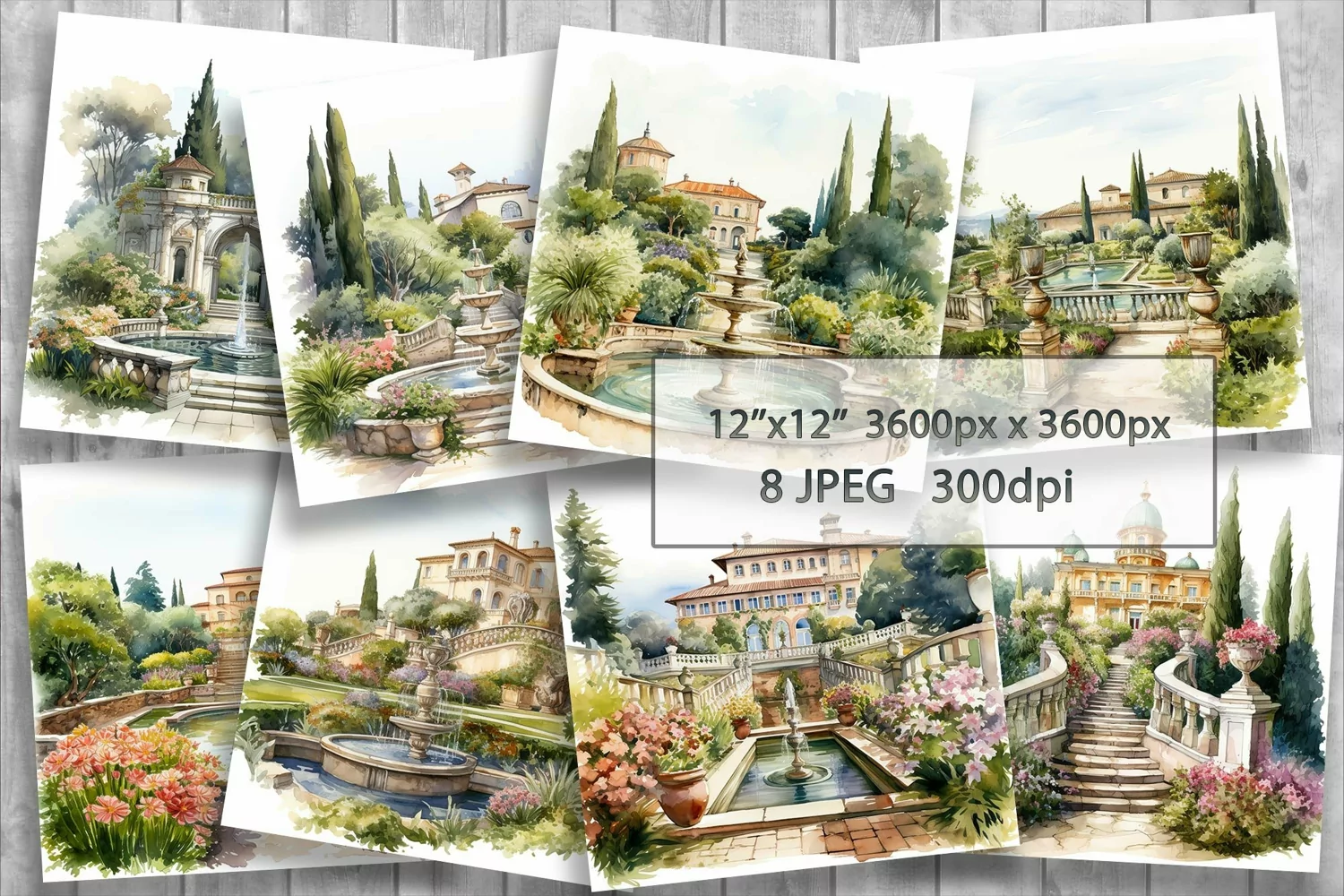 - 8 JPEG files 12”x 12” (3600px x 3600px) 300 dpi