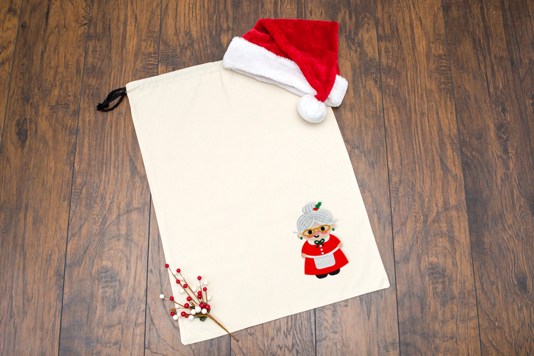 This adorable embroidery design features Santa's wife, Mrs Claus. Great for Christmas decorating and gifts! Some details change from satin to bean stitch at the smallest size.