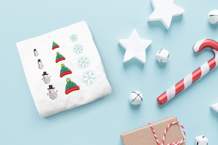 This set of micro embroidery designs is perfect for the winter or the holidays. Includes 3 mini embroidery designs: A snowman, a winter hat, and a snowflake. The snowman does not have arms or a nose at the 2 smallest sizes. Depending on your color choices, the winter hat can be a Santa hat.