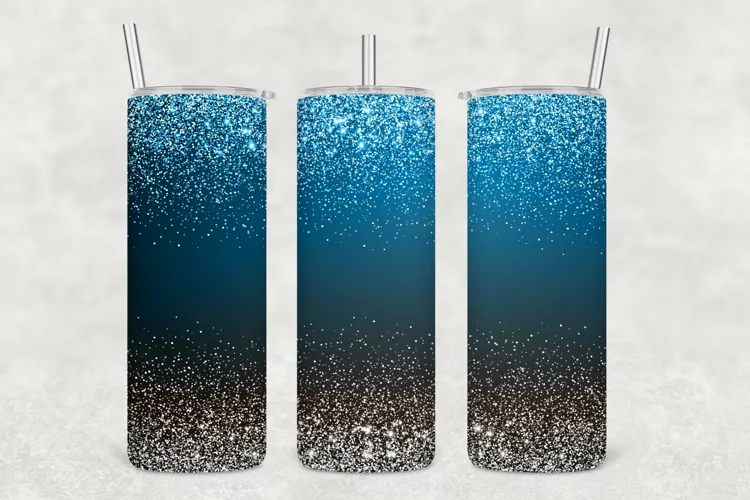 Black and Blue Sparkle Glitter Tumbler Wrap Sublimation