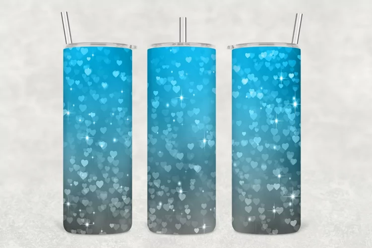 Cyan Shade Hearts Sparkle Tumbler Sublimation