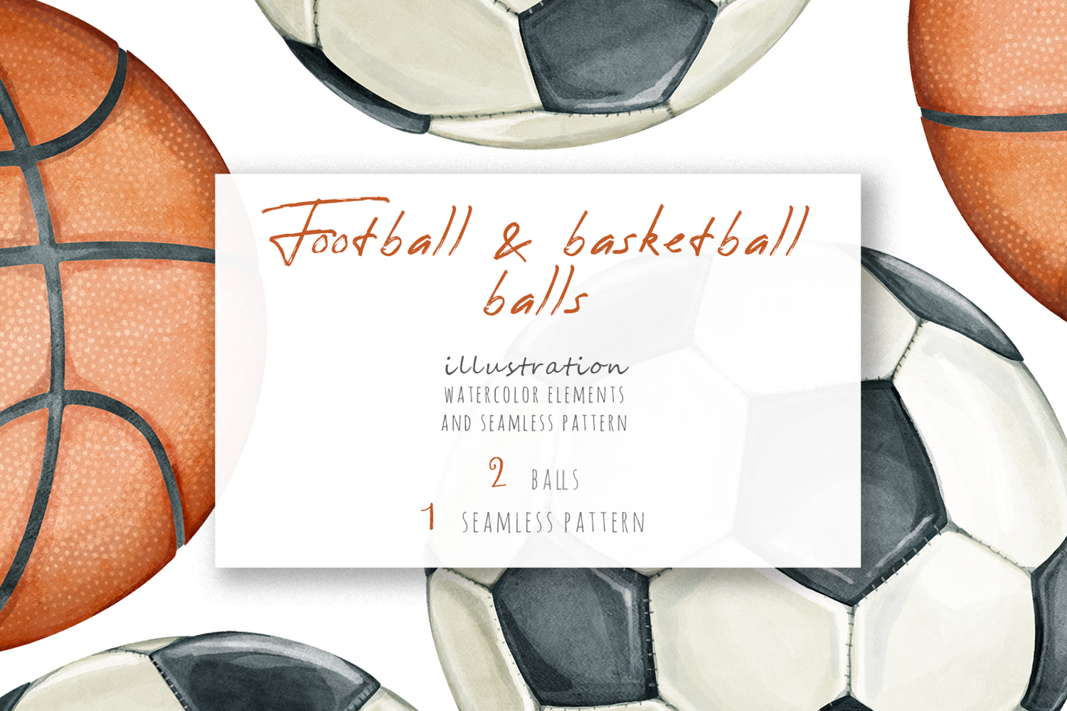 «WATERCOLOR FOOTBALL AND BASKETBALL BALLS" collection includes