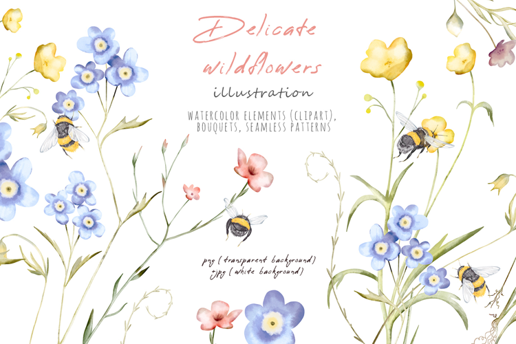 "WATERCOLOR DELICATE WILDFLOWERS" collection includes