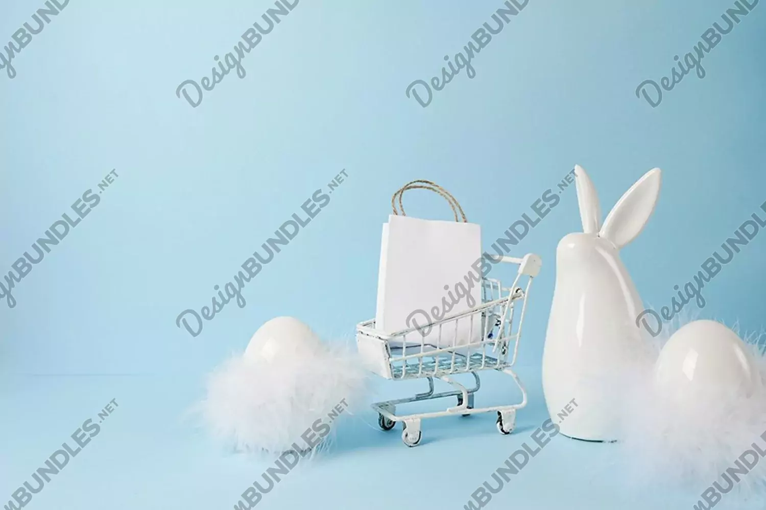 Similar Design Products to White easter bunny with shopping cart and easter eggs