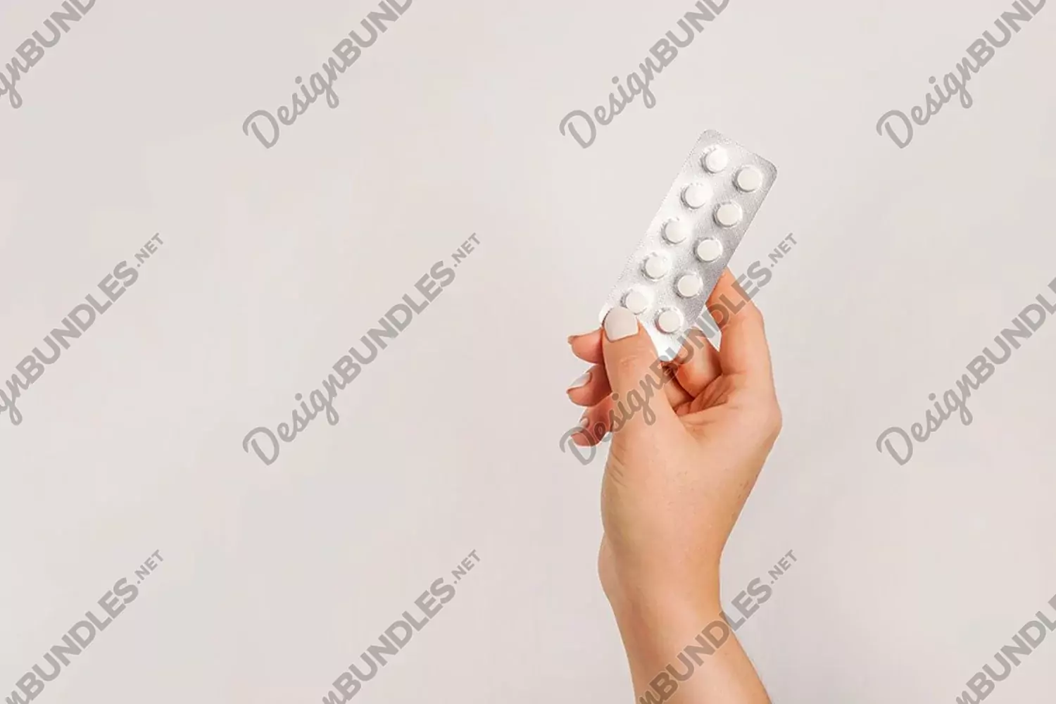 Similar Design Products to Hand holding medicine pills on a light gray background