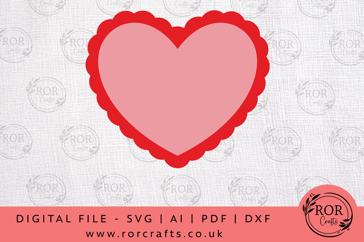 Add a bold and romantic accent to your creative projects with this Scalloped Heart Frame SVG Design. Featuring a soft pink heart surrounded by a bright red scalloped border, this clean and eye-catching design is perfect for Valentine’s Day, anniversaries, weddings, and love-themed creations.