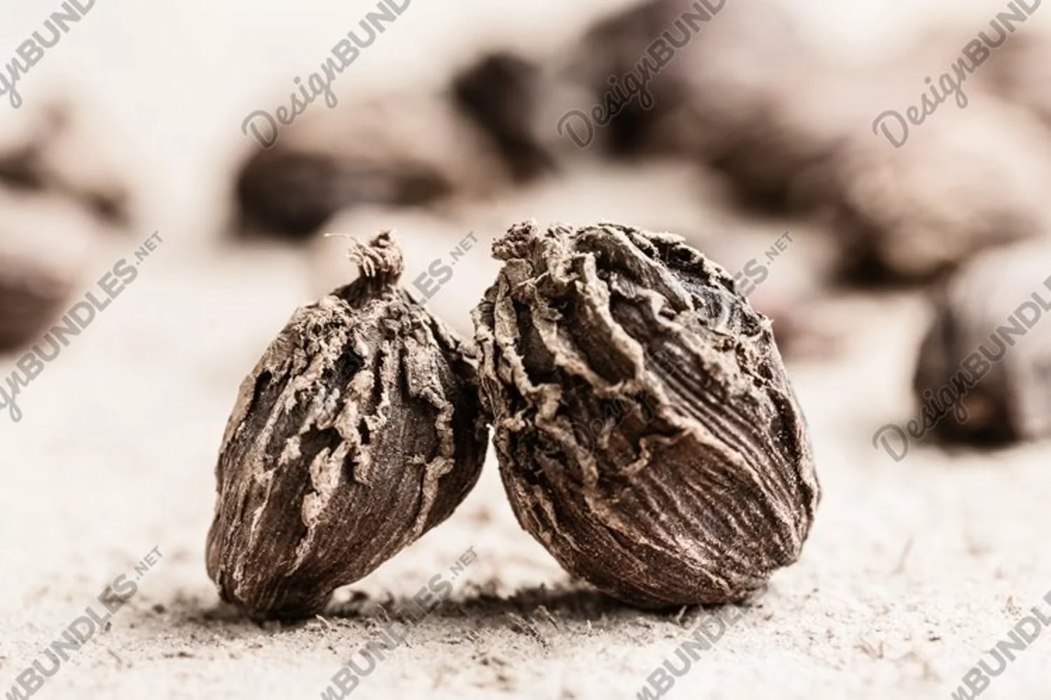 Similar Design Products to Whole black cardamom on wooden rustic background close-up.