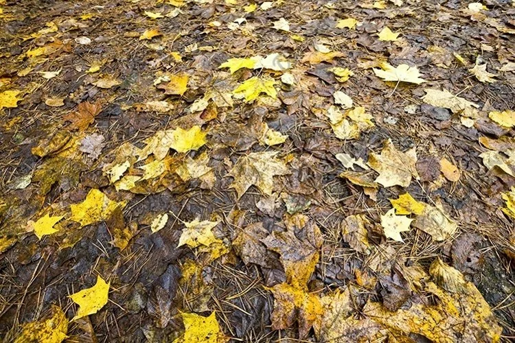 colored abstract background of real foliage on the ground after leaf fall close-up in nature foliage begins to rot