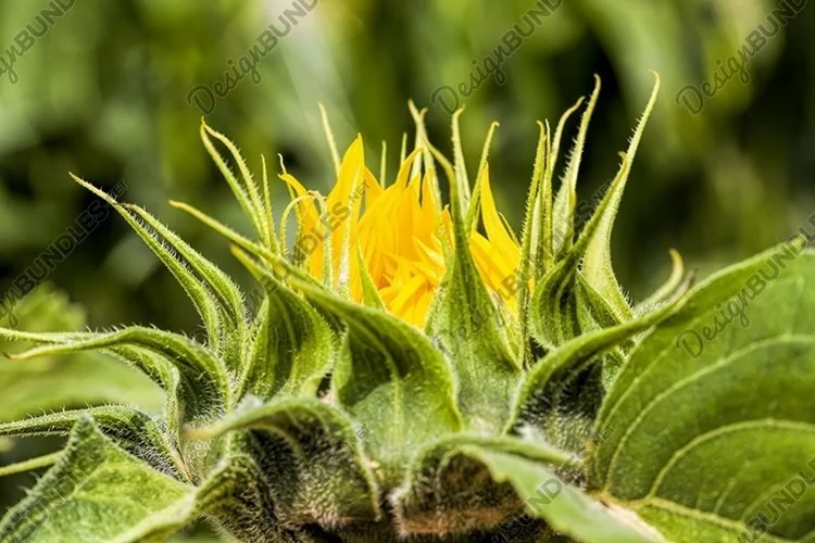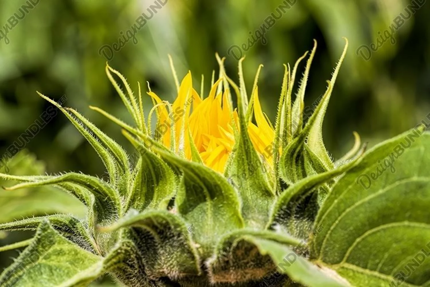 annual sunflower with yellow petals on an agricultural field, close-up of Sunny flowers with a closed Bud