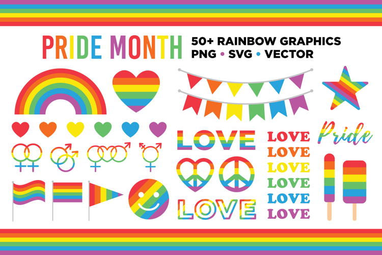 High quality clip art images for use on the web or in print, featuring rainbow pride graphics like flags, pendants, peace sign, heart, star, "love" and "pride" text, bunting and flag banner, rainbow divider/border, balloons, and more. Save time and money for your design needs! Mix and match as needed. Could be used for events or education within a Gay-Straight Alliance (GSA), Queer-Straight Alliance (QSA), or simply a Pride Club. Advertise for a local Pride Event or charity. Or simple use the rainbow graphics for any fun project!