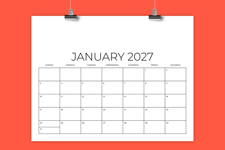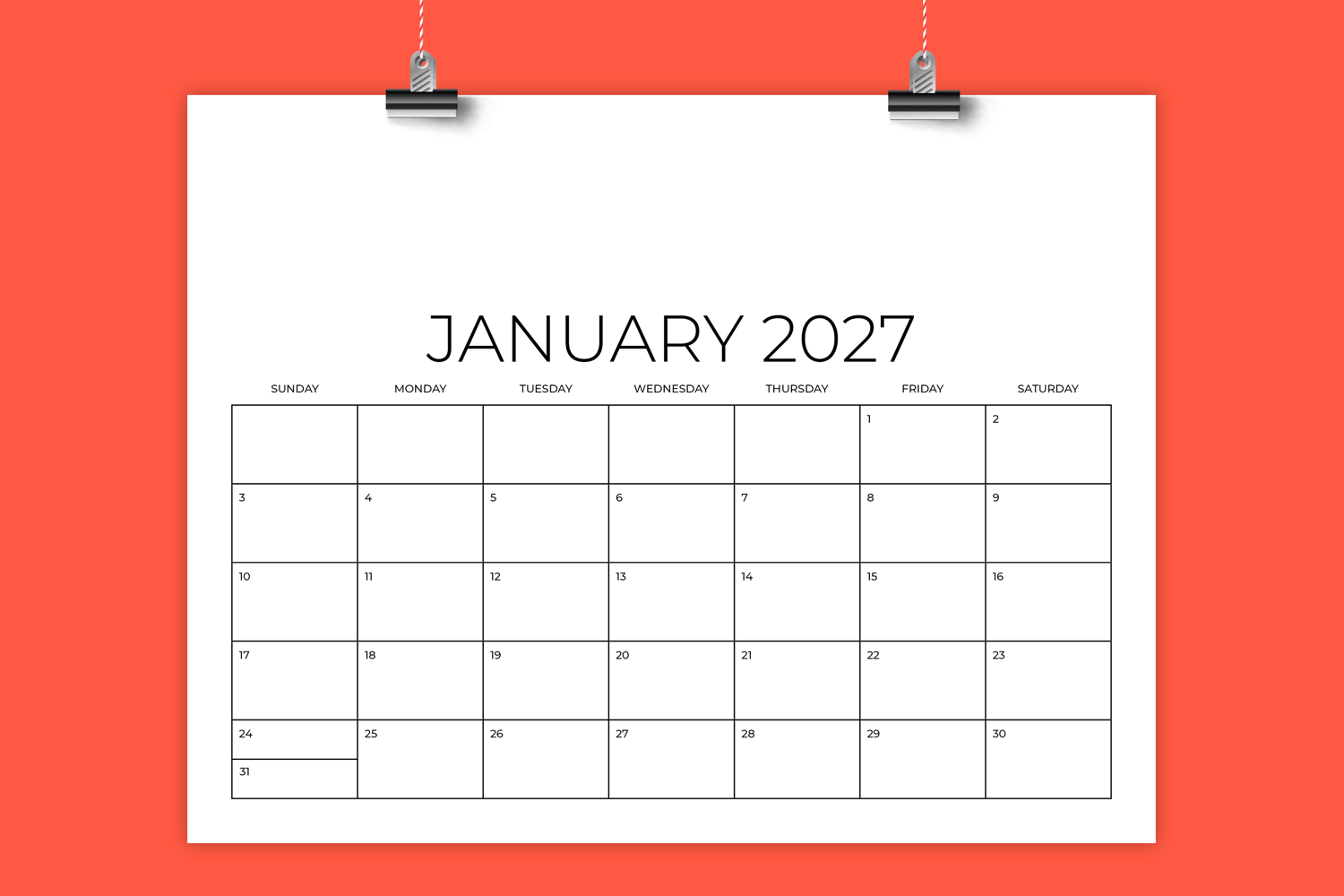This listing is for a printable 2027 calendar template. Use as is, or add to it as needed! Perfect for home or office.