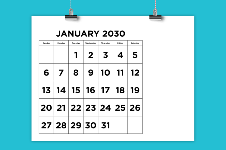 This listing is for a printable 2030 calendar template. Use as is, or add to it as needed! Perfect for home or office.