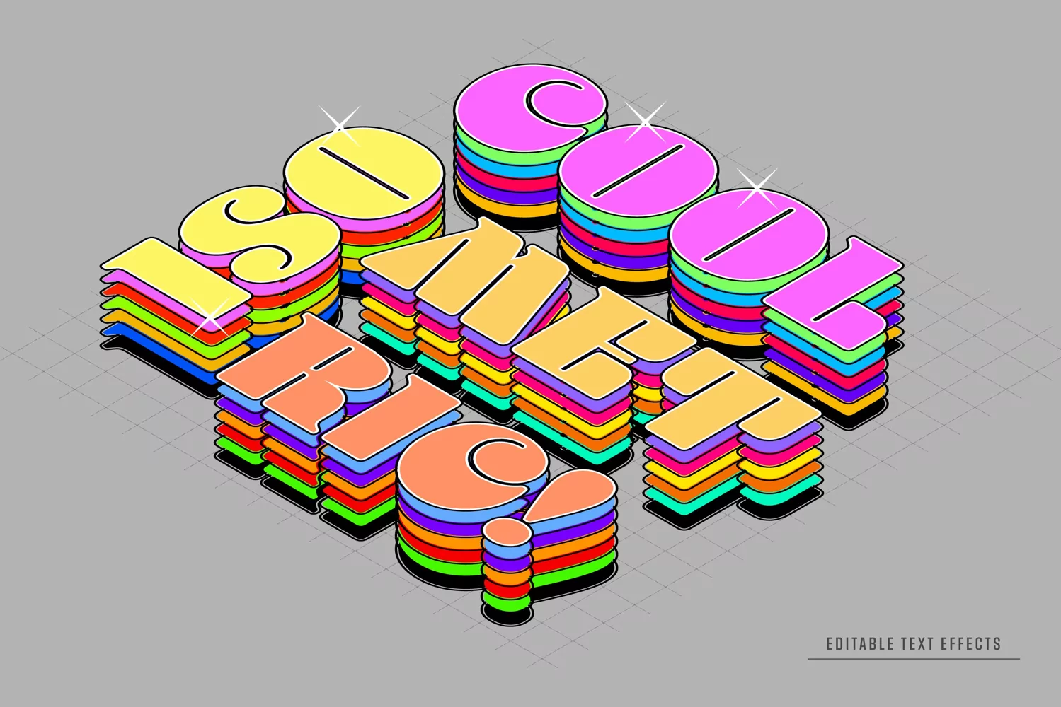 Dive into the world of vibrant and playful text with isometric funky text effects. This style combines the dimensionality of isometric design with bold, colorful typography to create eye-catching and dynamic visuals. Perfect for digital art, graphic design projects, posters, and more, these effects add a touch of fun and energy to any creation.