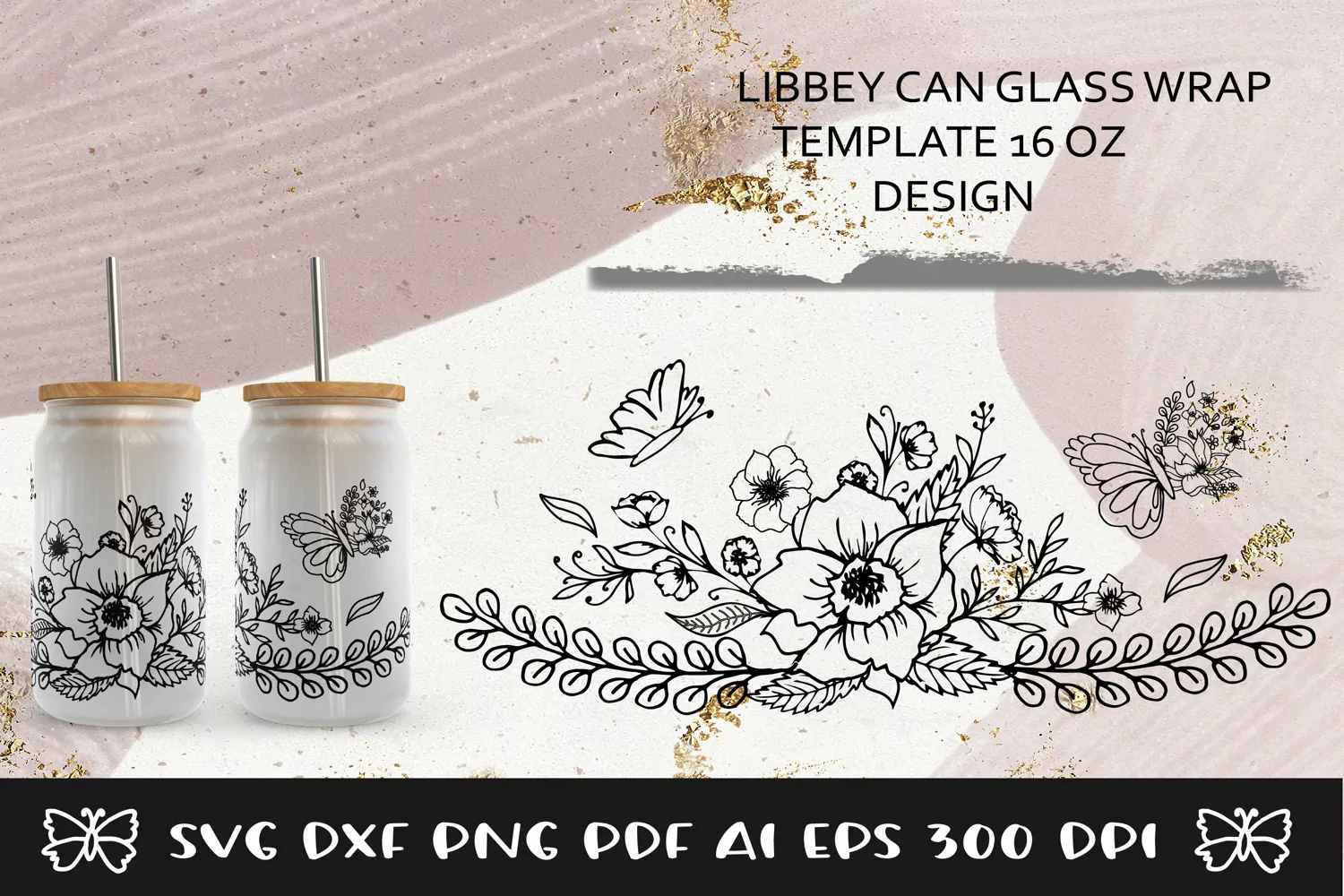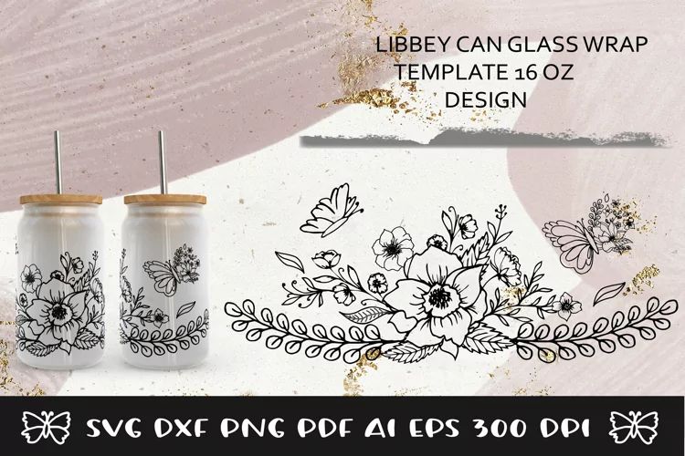 This Full Wrap for the Libbey with Floral , Flowers, Butterfly SVG Design.