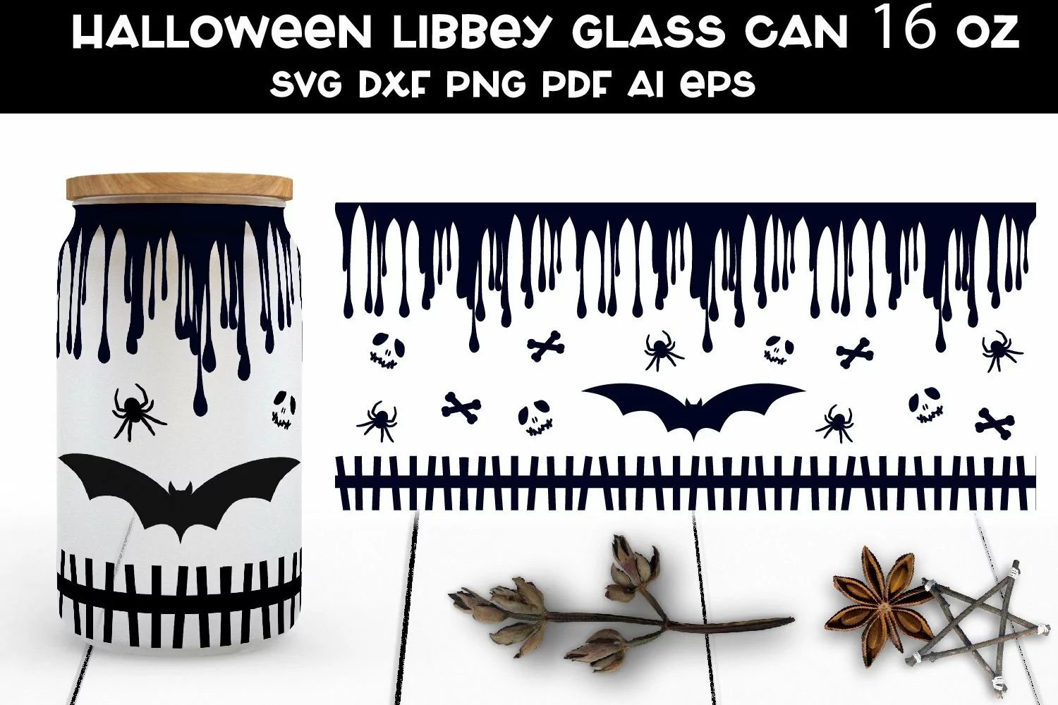 Halloween Libbey Glass Can SVG. Glass Can Wrap SVG.