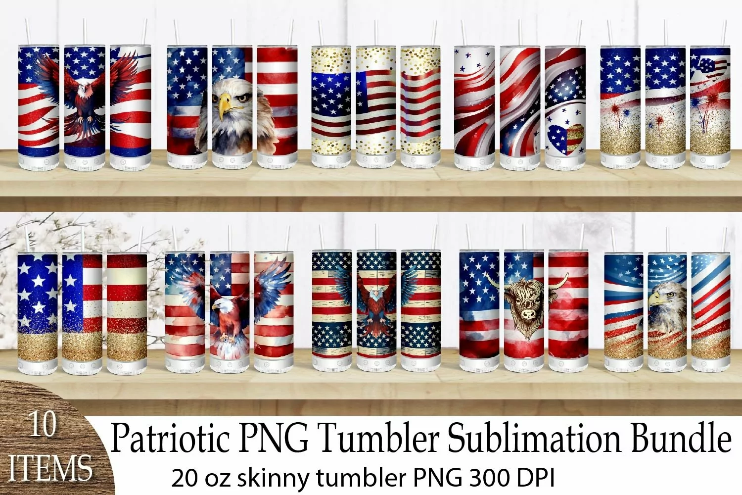 Patriotic Tumbler Sublimation Bundle. 10 Designs.