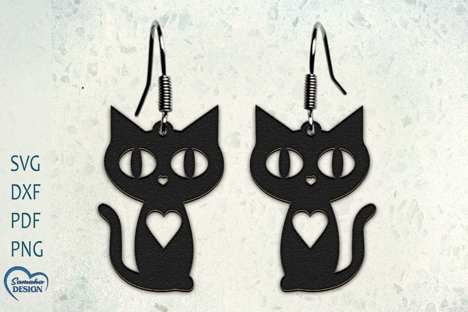 Halloween Cat Earrings Laser Cut. Cute Cat Earrings. example image 1