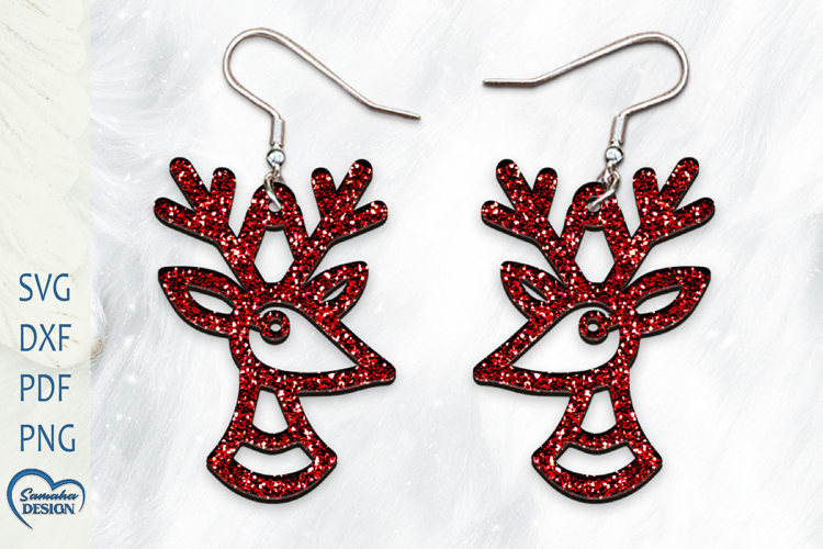Christmas Earrings Laser Cut. Christmas Deer Laser Cut. example image 1