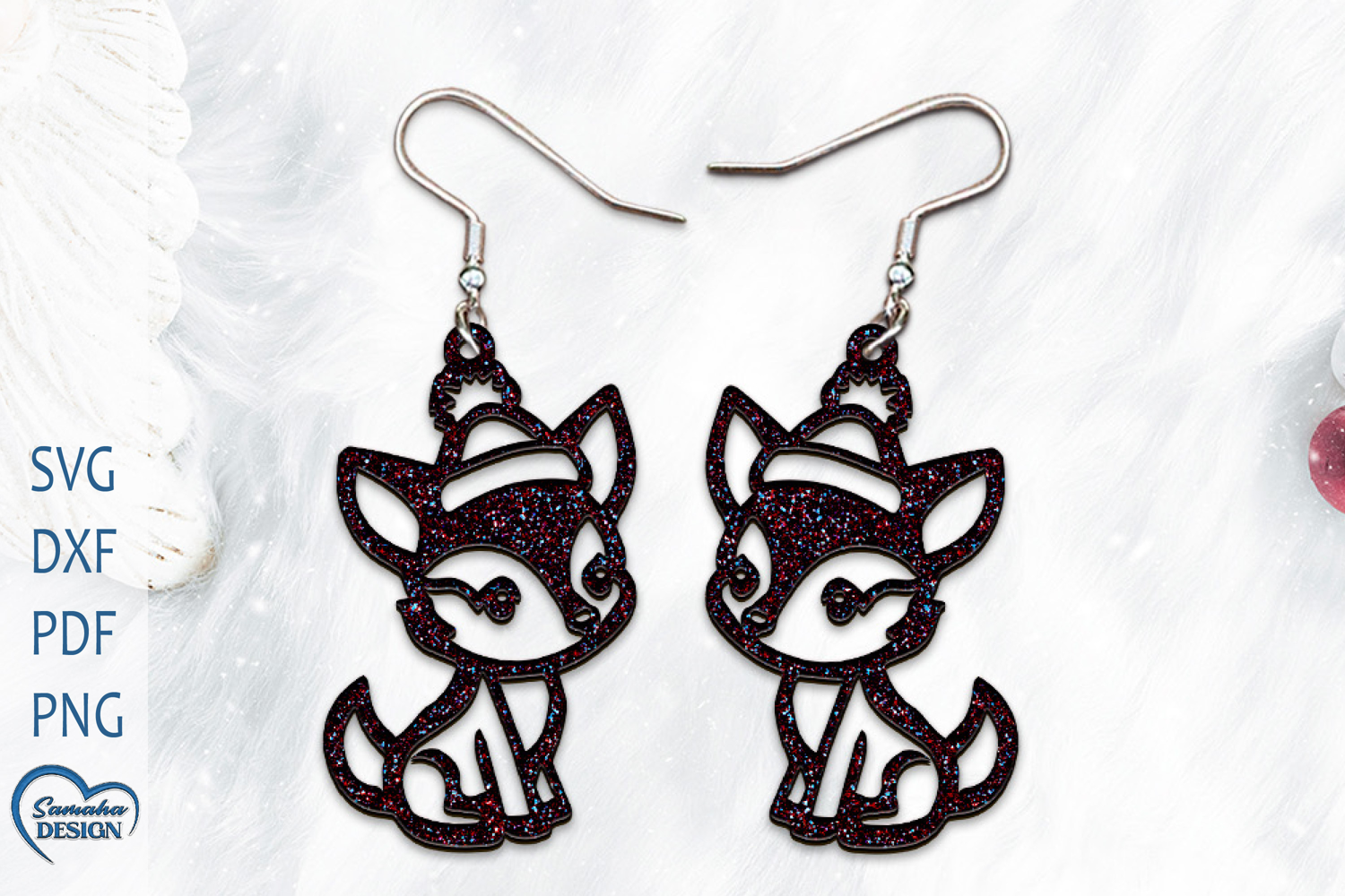 Christmas Earrings Laser Cut. Christmas Deer Laser Cut.