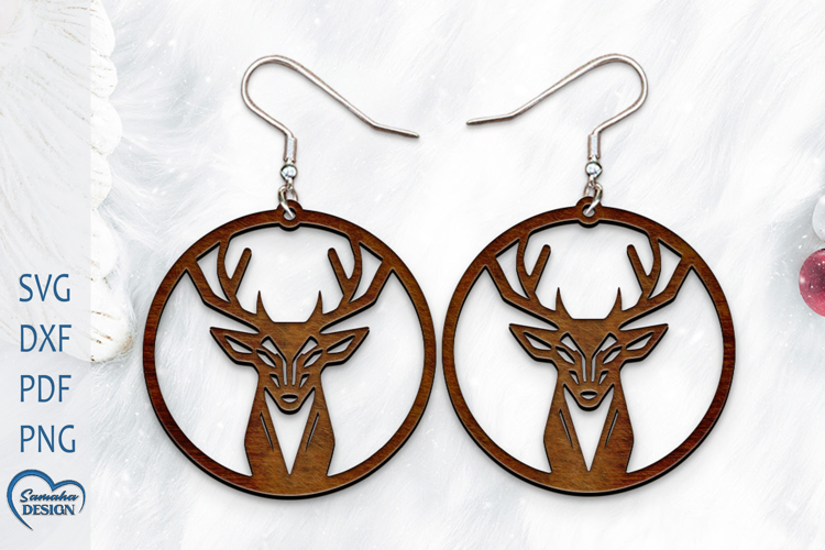 Christmas Earrings Laser Cut. Christmas Deer Laser Cut.
