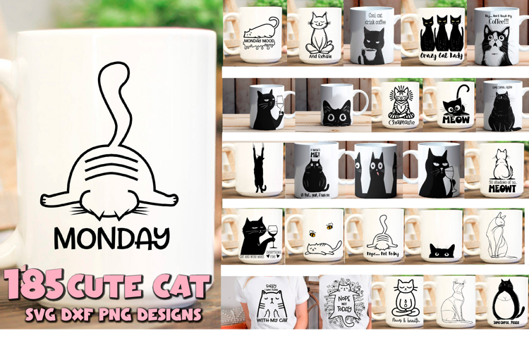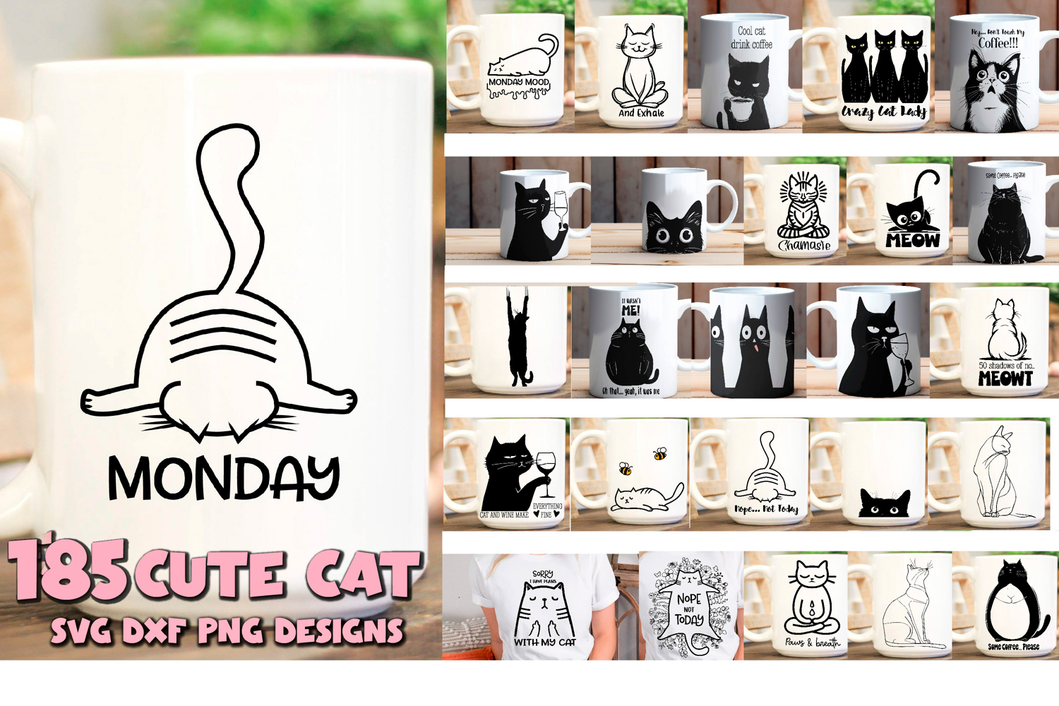 185 Cat Mom Designs. Cat SVG. Cat Coffee Mug Bundle SVG.
