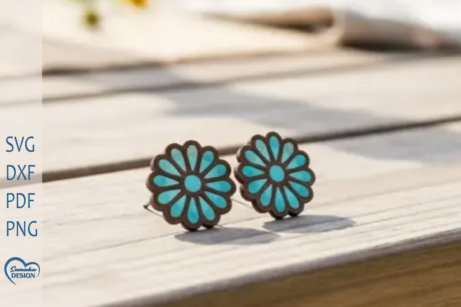Spring Stud Flower Earrings Laser Cut. Boho Earrings Laser. example image 1