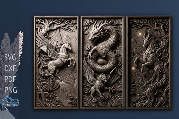 Similar Design Products to 3D effect Mythical Creatures Engraving file. Home Decor.