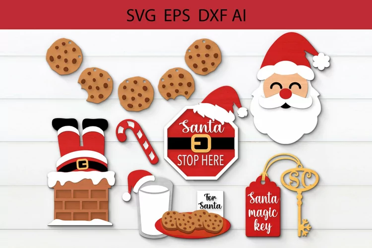 Santa Tiered Tray Svg Bundle, Christmas Holiday Tier Tray Svg, Glowforge Svg, Christmas Decor Svg, Santa Magic Key Svg, Winter Tiered Tray