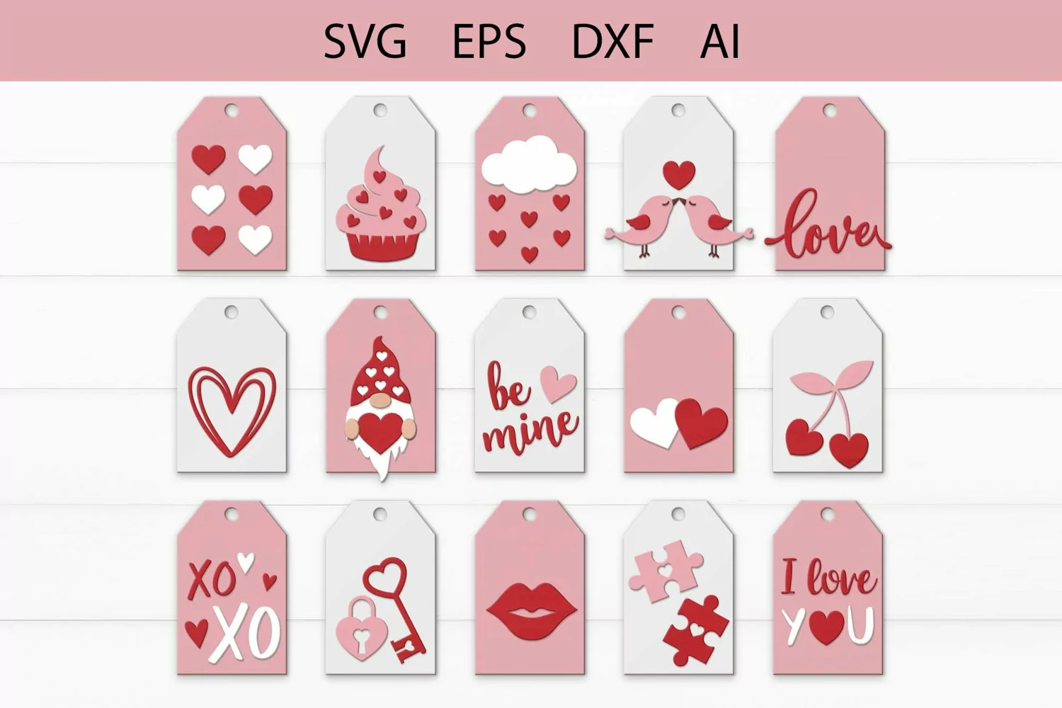 Valentine Tags Bundle Laser File, Valntines Day Gift Tag svg