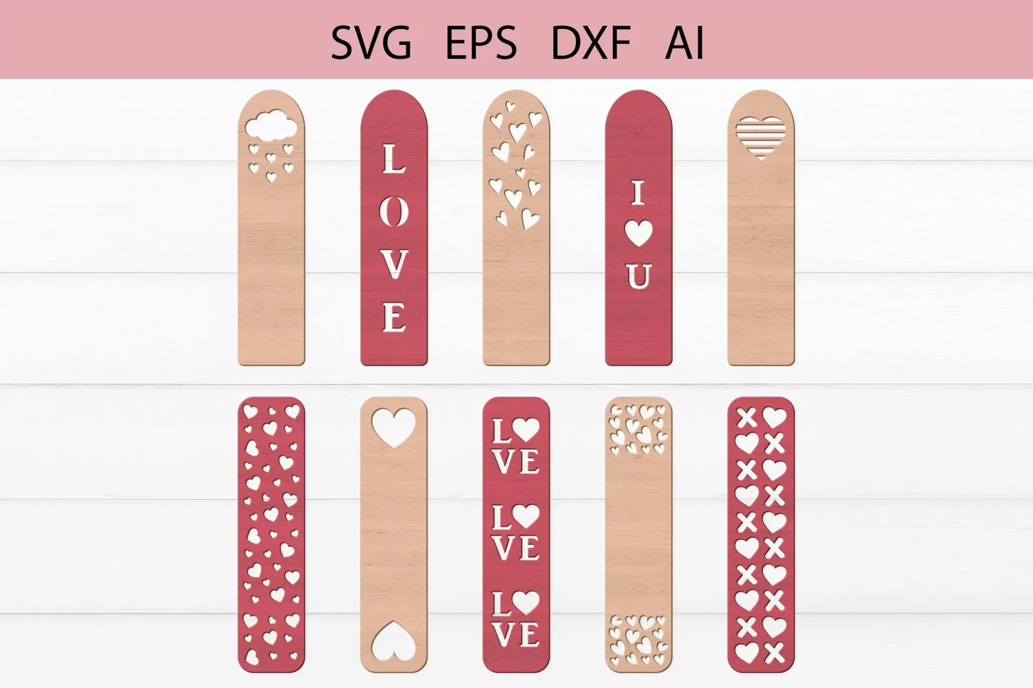 Valentines Day Bookmark Laser Cut SVG example image 1