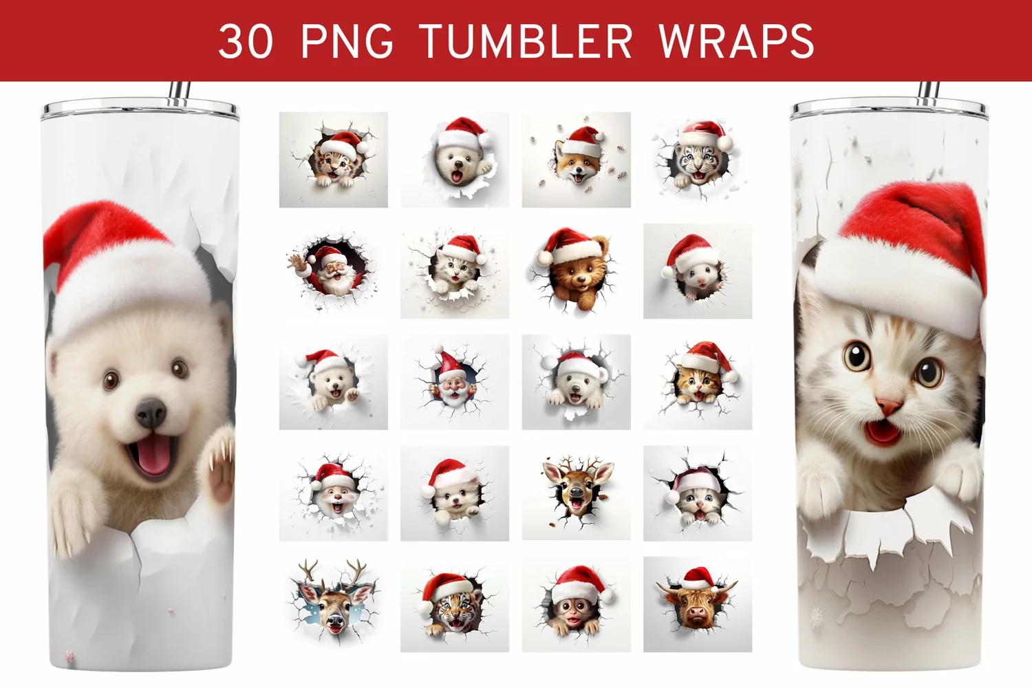3D Christmas Bundle Skinny Tumbler Sublimation, Christmas Animal Tumbler Wrap, Cute Christmas Tumbler png, 20oz Christmas Sublimation Bundle