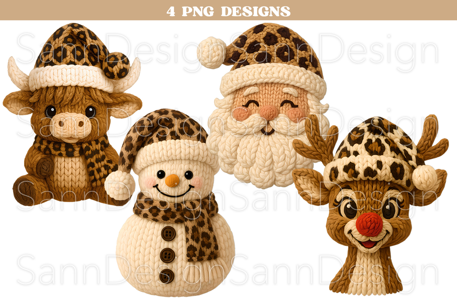 Leopard Print Crochet Christmas PNG Bundle, Faux Yarn Knit example image 1