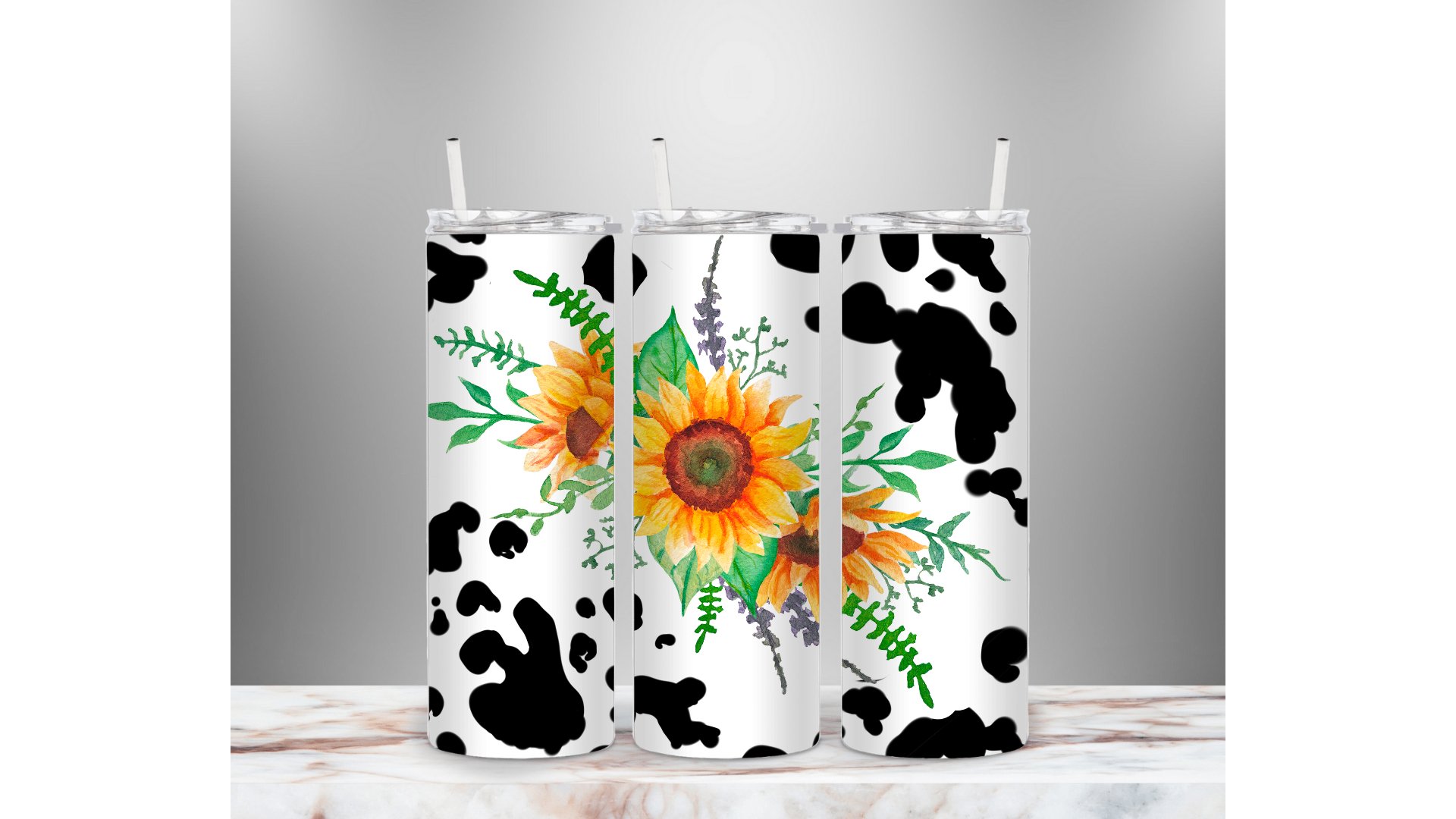 ♥♥ Cow print and watercolor sunflower 20 oz skinny tumbler sublimation png design♥♥