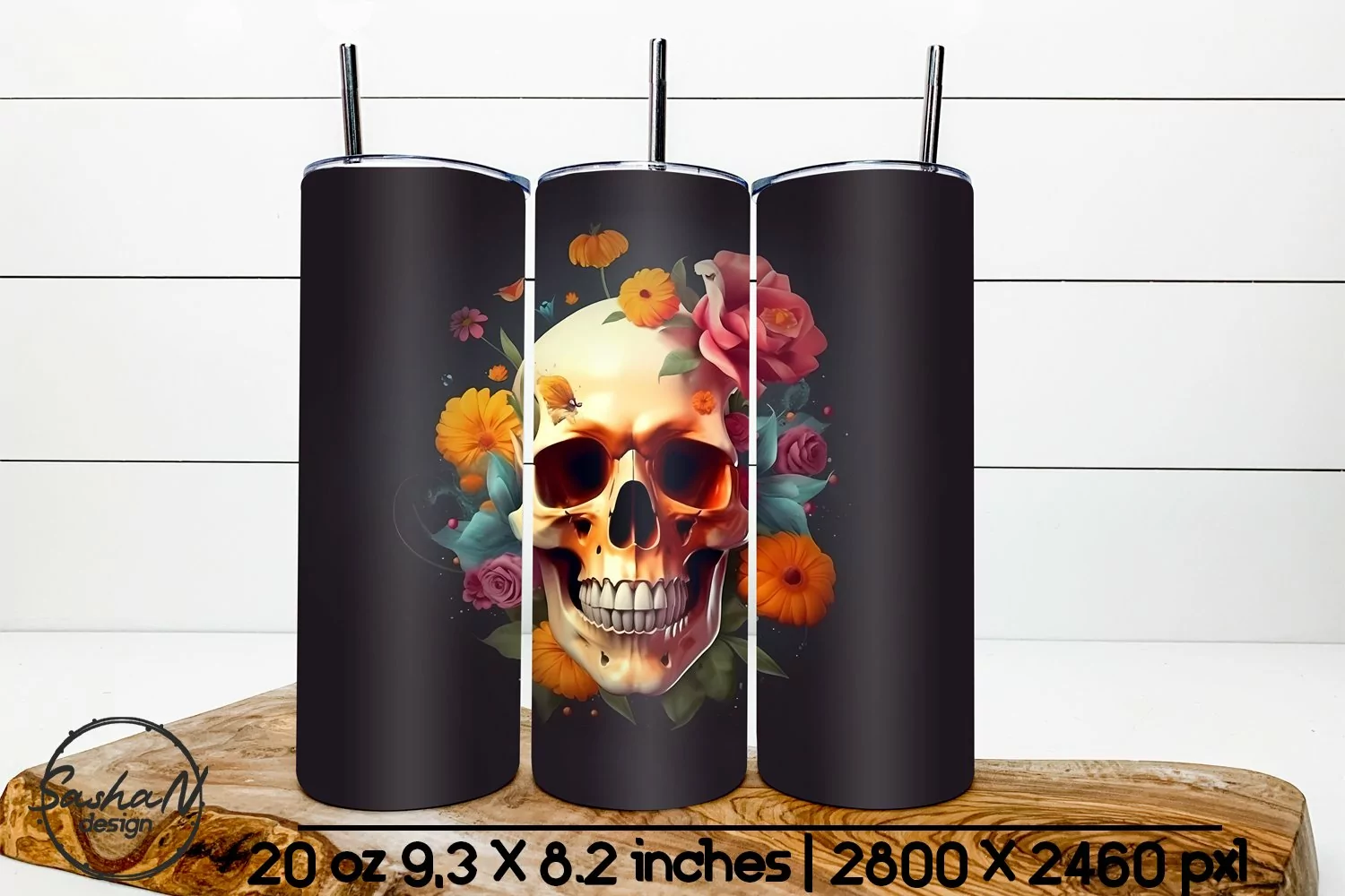 Similar Design Products to Skull with flowers, 3d tumbler wrap