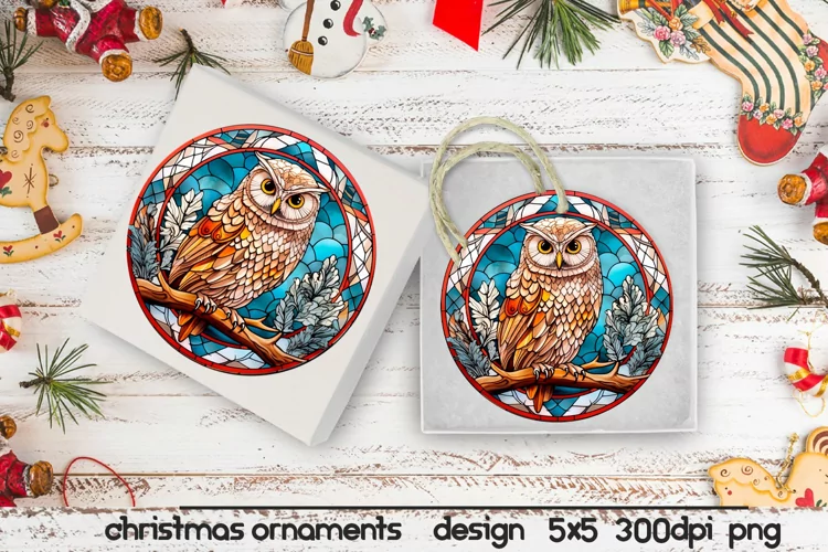 Similar Design Products to Stained glass sublimation owl, Christmas ornament