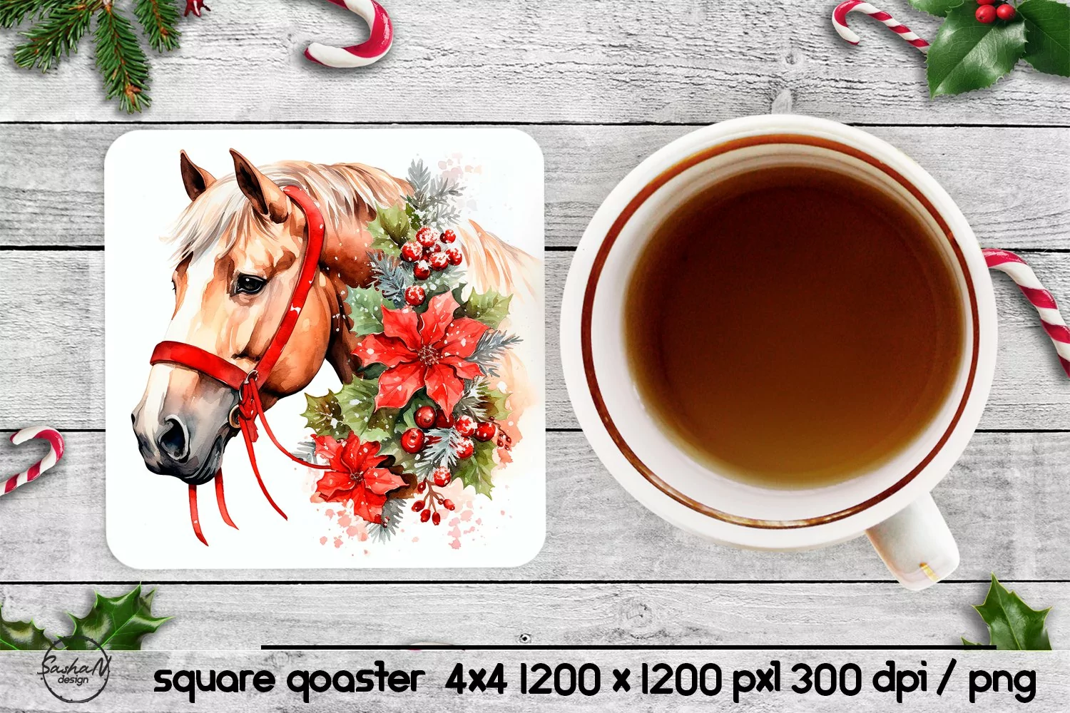 Watercolor Christmas Christmas Sublimation Horse Watercolor Floral Horse Christmas Horse Square Coasters Coaster Design Christmas Horse Sublimation Coaster Sublimation Square Coasters Sublimation Designs