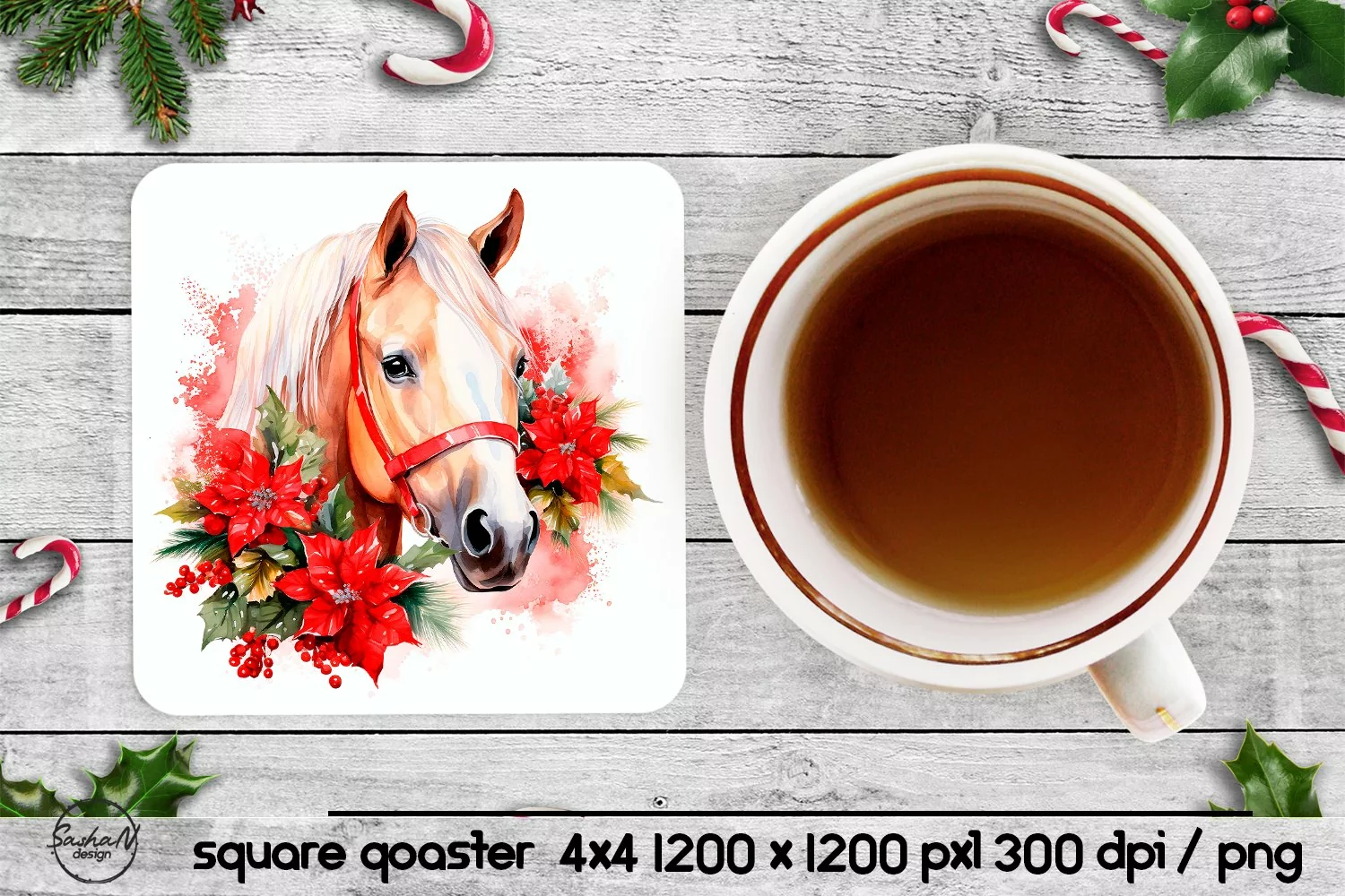 Watercolor Christmas Christmas Sublimation Horse Watercolor Floral Horse Christmas Horse Square Coasters Coaster Design Christmas Horse Sublimation Coaster Sublimation Square Coasters Sublimation Designs