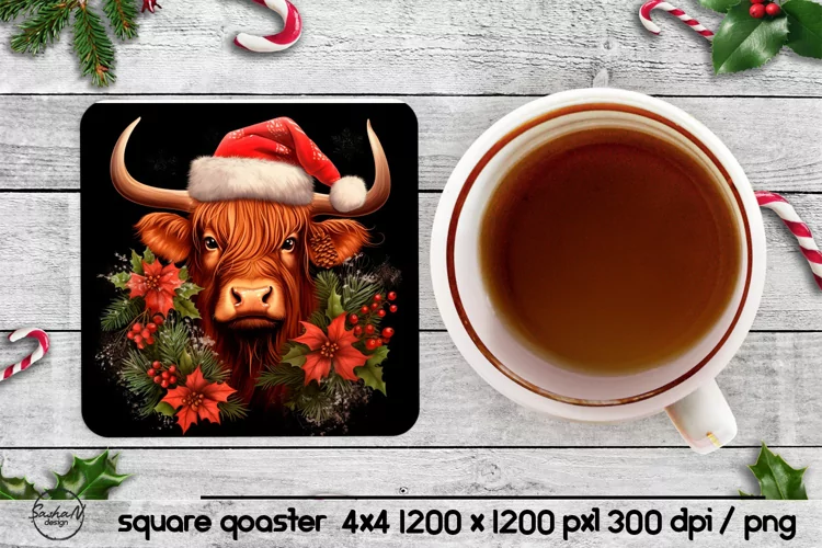 Christmas Sublimation Square Coasters Coaster Design Christmas Cow Png Coaster Sublimation Christmas Highland Cow Christmas Highland Cow Sublimation Highland Cow Watercolor Square Coasters Sublimation Designs Winter Cow