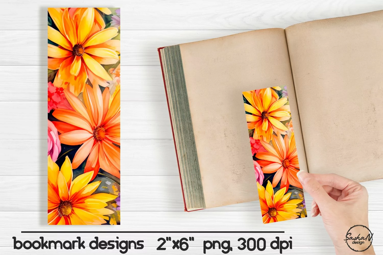 Watercolor floral bookmark sublimation