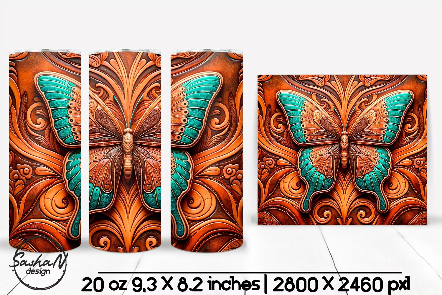 3d butterfly tumbler sublimation, Tooled leather example image 1