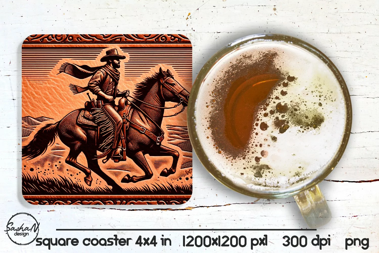 3d Sublimation Cowboy Sublimation Coaster Designs Embossed Leather Leather Coaster Tooled Leather Png Square Coaster Designs Square Coaster Sublimation 3d Coaster 3d Squares