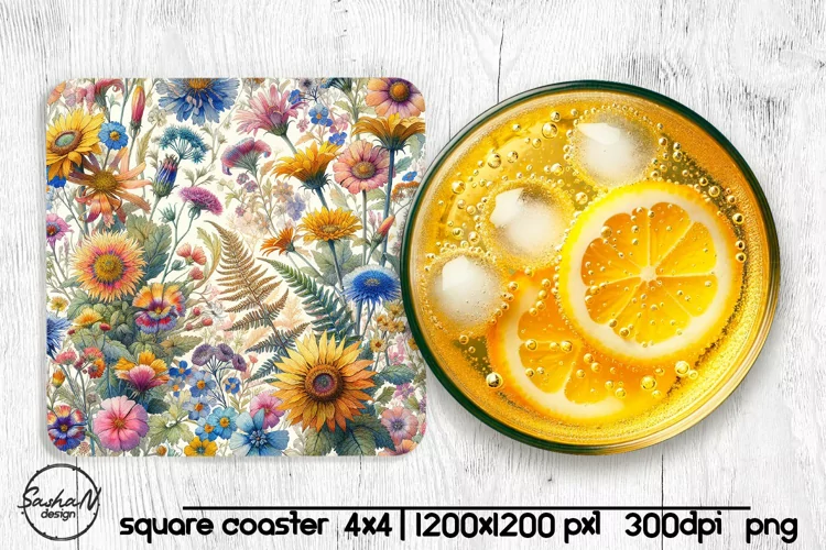Watercolor Flowers Wildflowers Coaster Wildflowers Png Coaster Designs Square Coaster Square Coaster Designs Flowers Coaster Coasters Square Square Coaster Sublimation