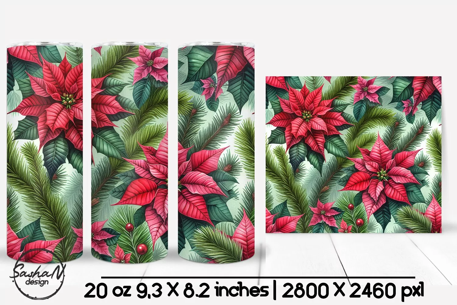 20 oz Poinsettia tumbler, Christmas tumbler wrap