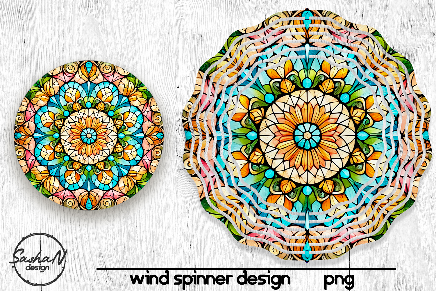 Colorful mandala stained glass wind spinner sublimation png example image 1