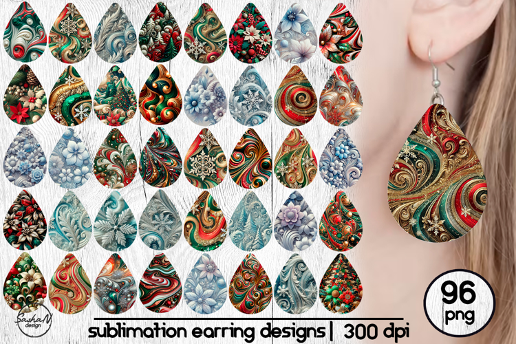 Christmas teardrop earring sublimation bundle