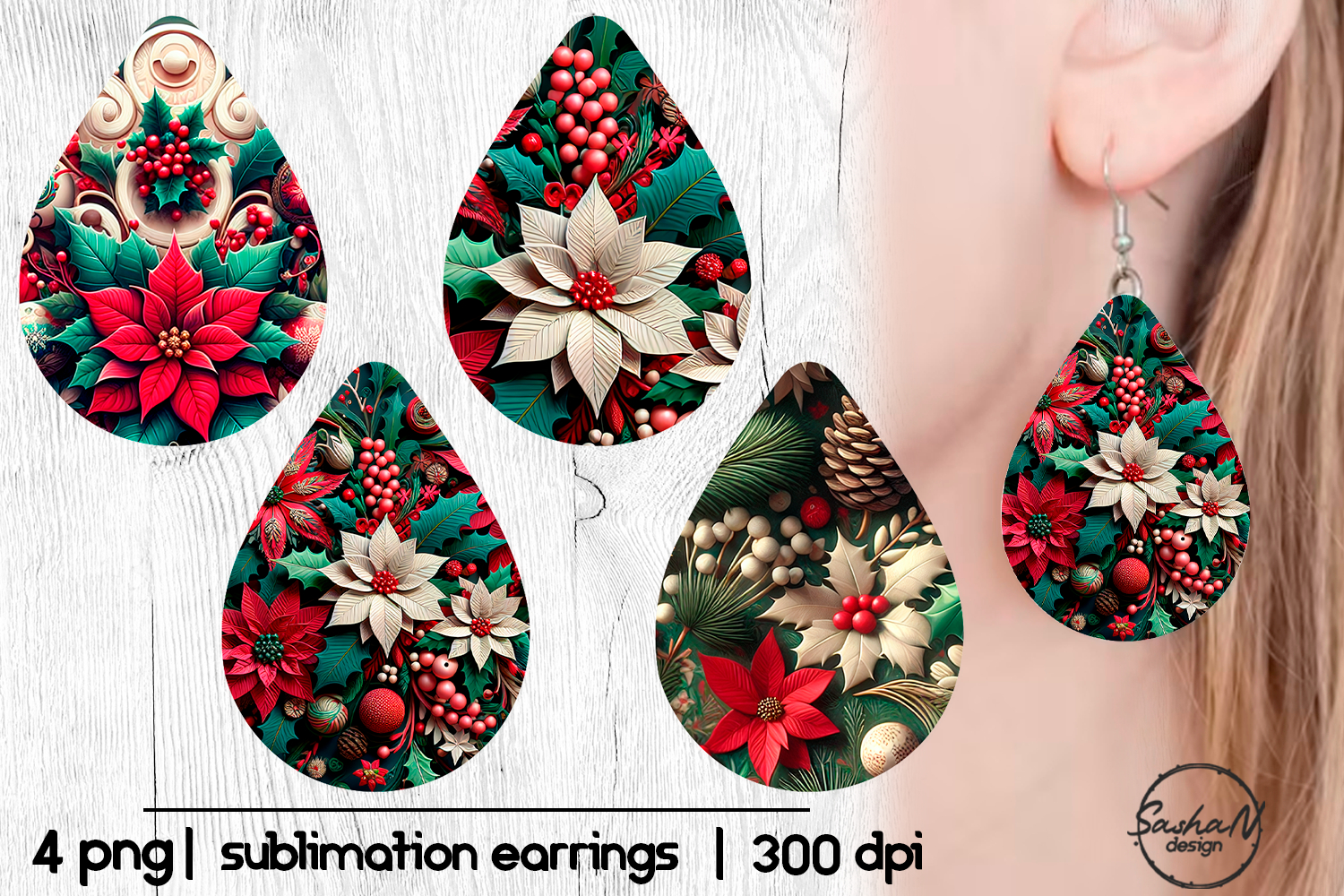 Christmas Ornament Poinsettias Winter Png Earring Sublimation Teardrop Earring Template Winter Earrings Abstract Earring Teardrop Earring Sublimation Teardrop Earring Sublimation Bundle Earrings Christmas Sublimation