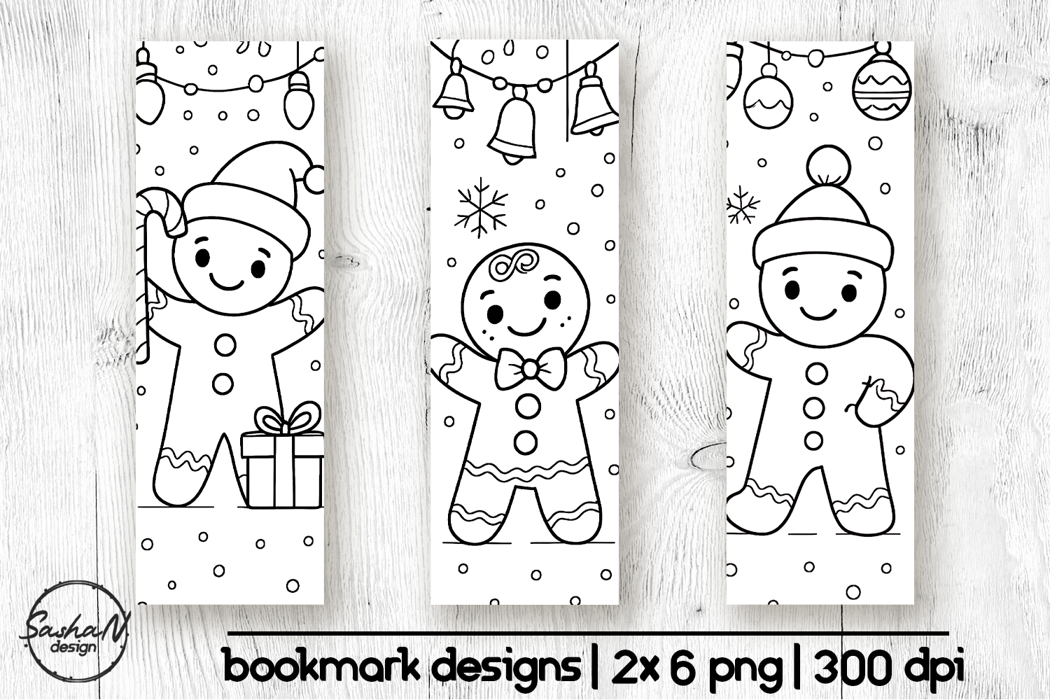 Gingerbread man coloring bookmarks, Christmas coloring example image 1