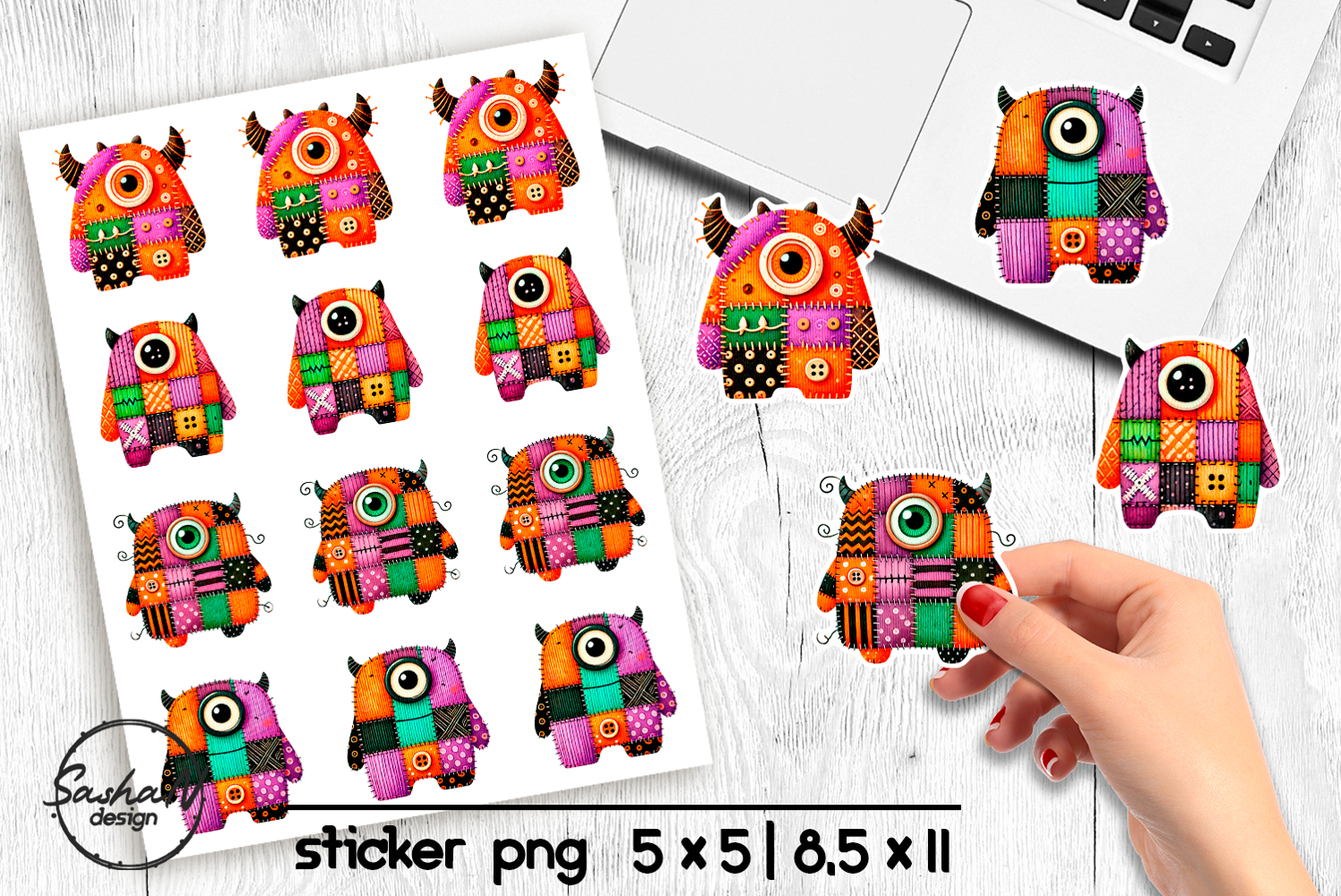 Halloween cute monster stickers png, Patchwork Halloween, Bring a festive touch to your creative projects with these adorable high-quality sticker designs! These printable PNG files with transparent backgrounds are perfect for scrapbooking, card making, planners and more. Easy to use for both. Each file is ready to print and cut with a cutting machine or by hand.